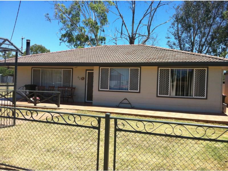 This 4 bedroom home in the community of Curlewis has 4 good sized bedrooms, 2 bathrooms, large kitchen, separate dining and lounge room warmed in winter by a kent fire and cooled in summer with evap cooling. With fully fenced yards you know your children and animals are safe. It also offers a single lock up garage, Single Carport and large undercover entertaining area.