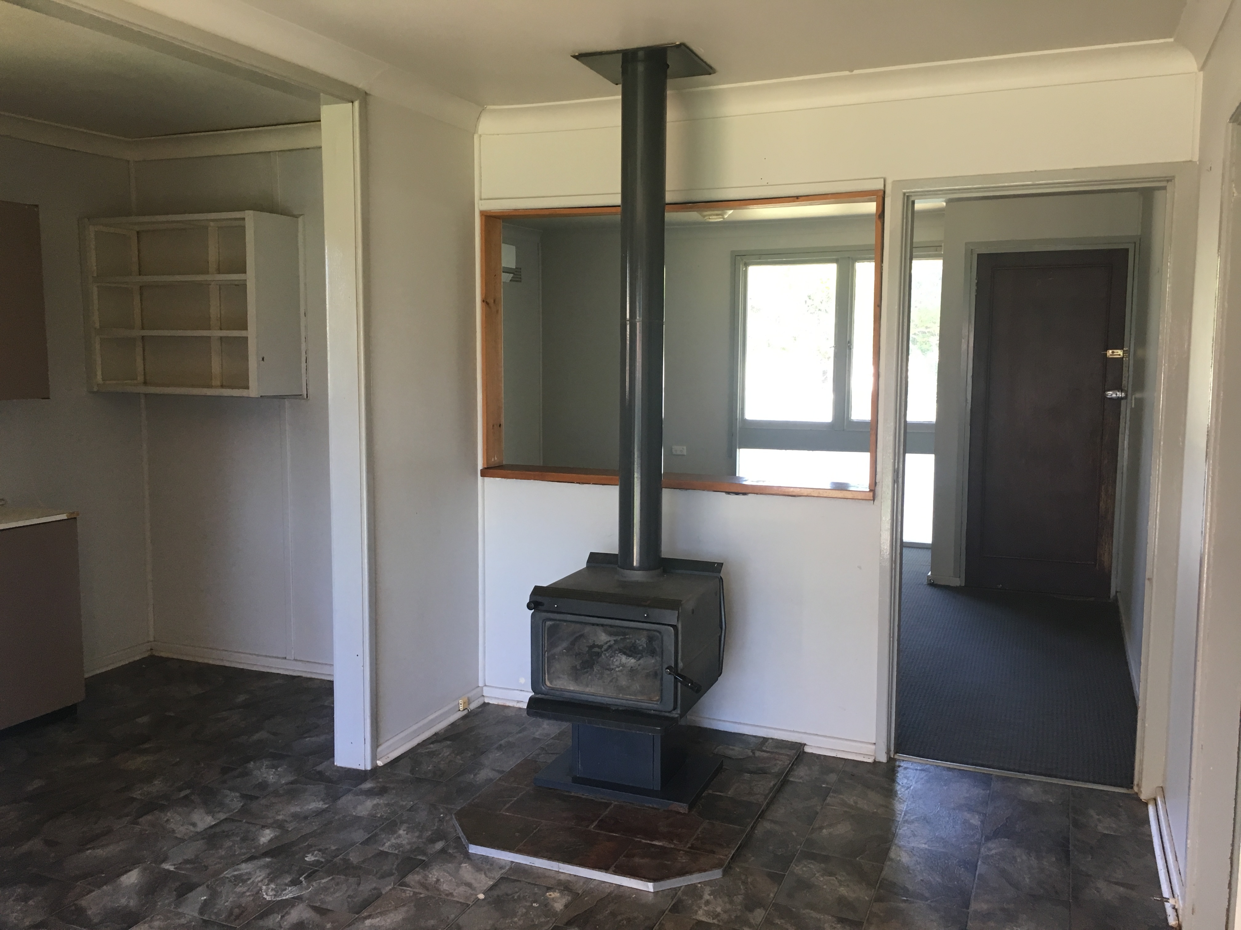 The home offers a wood fire for heating, wall A/C, neat and tidy bathroom and electric kitchen.
